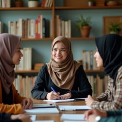 Illustration of Muslim women is discussing In the dynamics of groups both in organizations, communities, and friction work teams are …